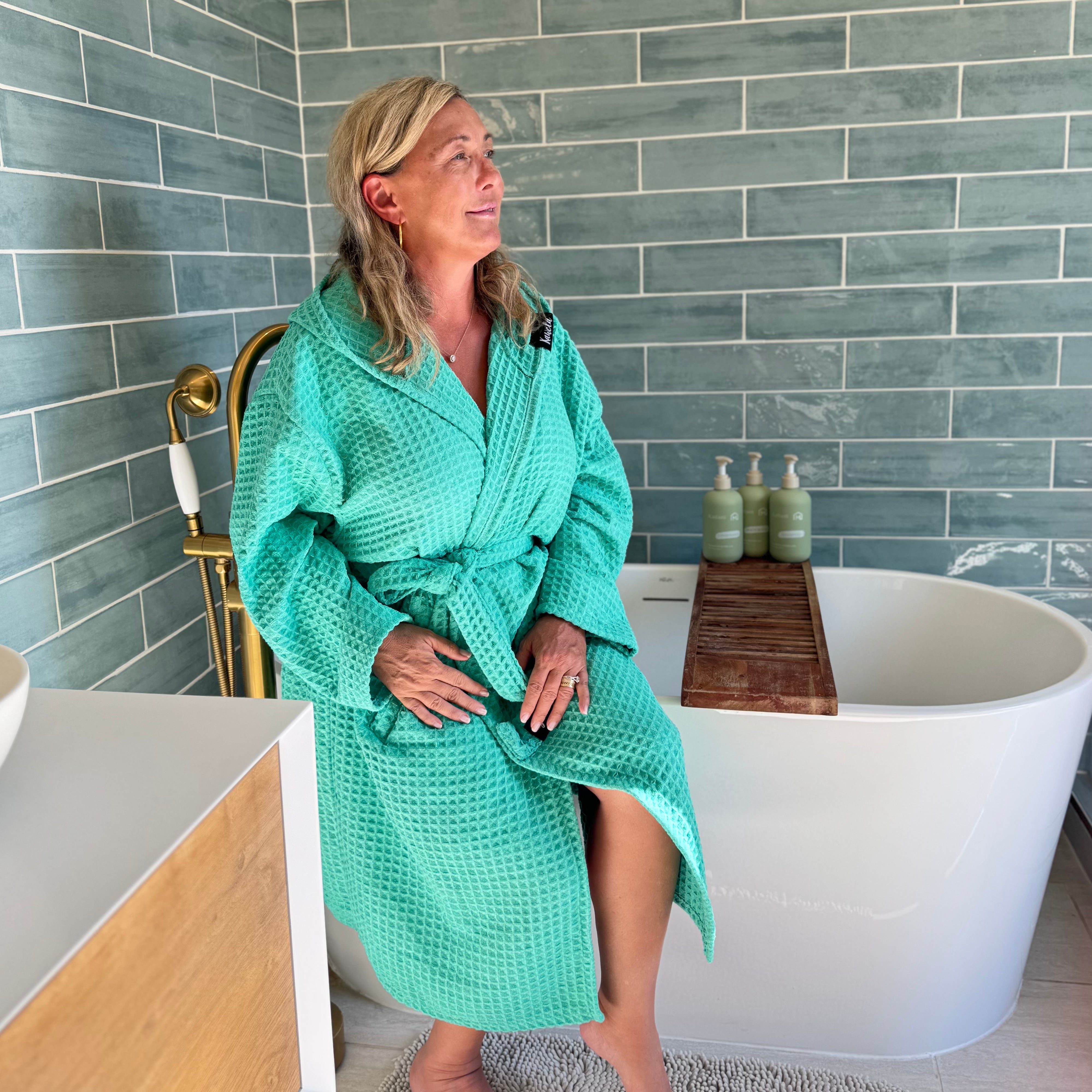 Conçus dans le même tissu en microfibre gaufrée que nos serviettes de bain, nos peignoirs allient douceur, confort et efficacité. Ultra légers et absorbants, ils sèchent rapidement tout en offrant une sensation agréable sur la peau. Idéals après la douche, pour relaxer à la maison ou à glisser dans la valise, ils deviendront vite un essentiel de votre routine bien-être.
