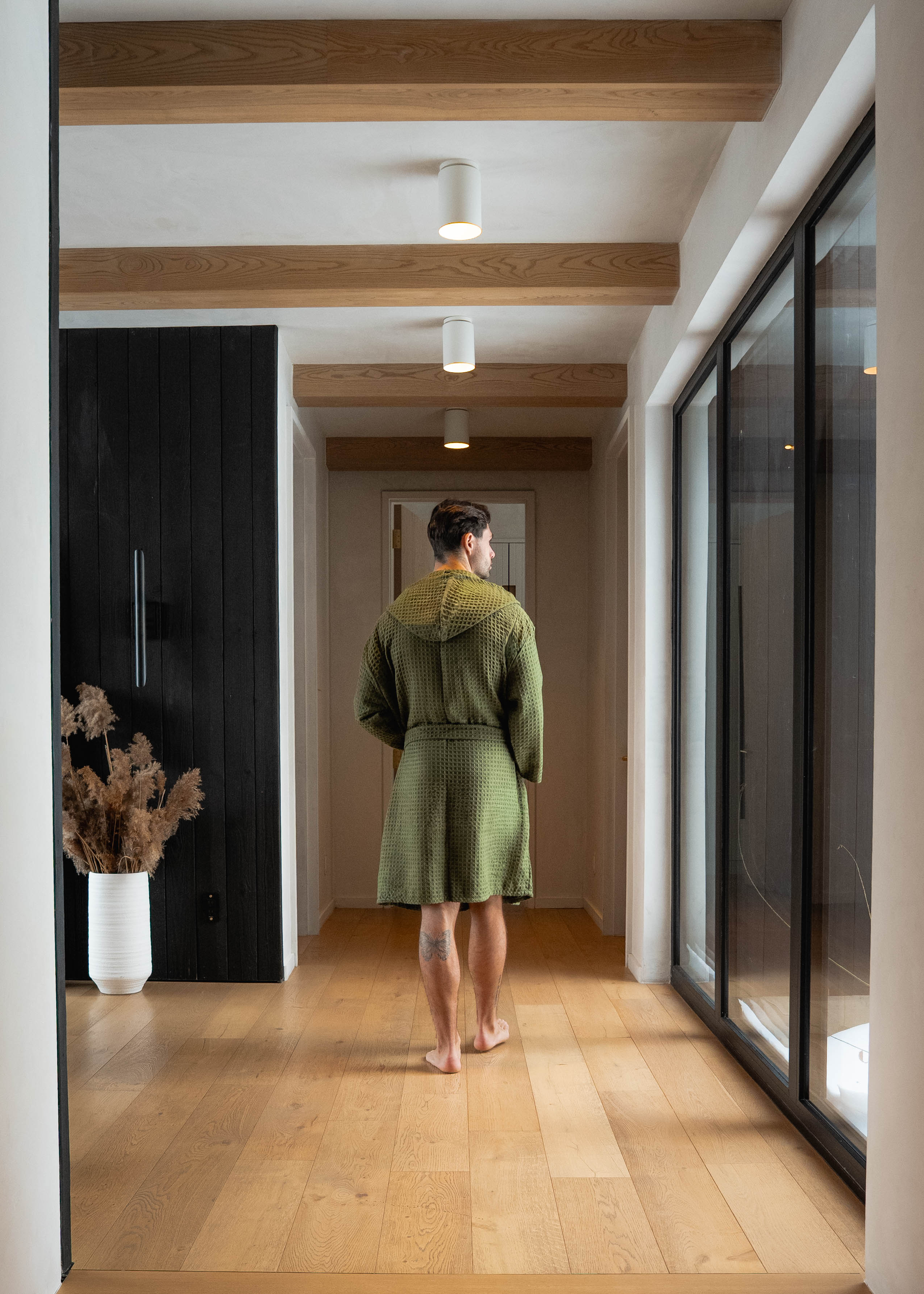 Conçus dans le même tissu en microfibre gaufrée que nos serviettes de bain, nos peignoirs allient douceur, confort et efficacité. Ultra légers et absorbants, ils sèchent rapidement tout en offrant une sensation agréable sur la peau. Idéals après la douche, pour relaxer à la maison ou à glisser dans la valise, ils deviendront vite un essentiel de votre routine bien-être.